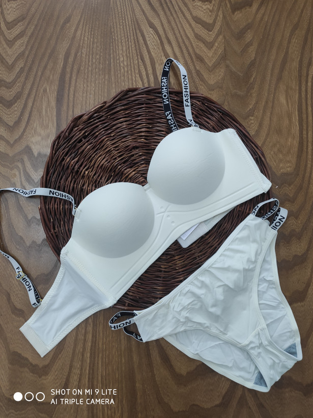 لباس زیر ست زنانه وارداتی شورت و سوتین ، جکدار ، اسفنجی ، بدون فنر ، شیری رنگ ، بند اسپرت ، سه قزن و سه سایز قابل تنظیم ، حلقه ها فلزی داخل فاق نخی ، جنس کشی حالت نیم کاپ و دکلته